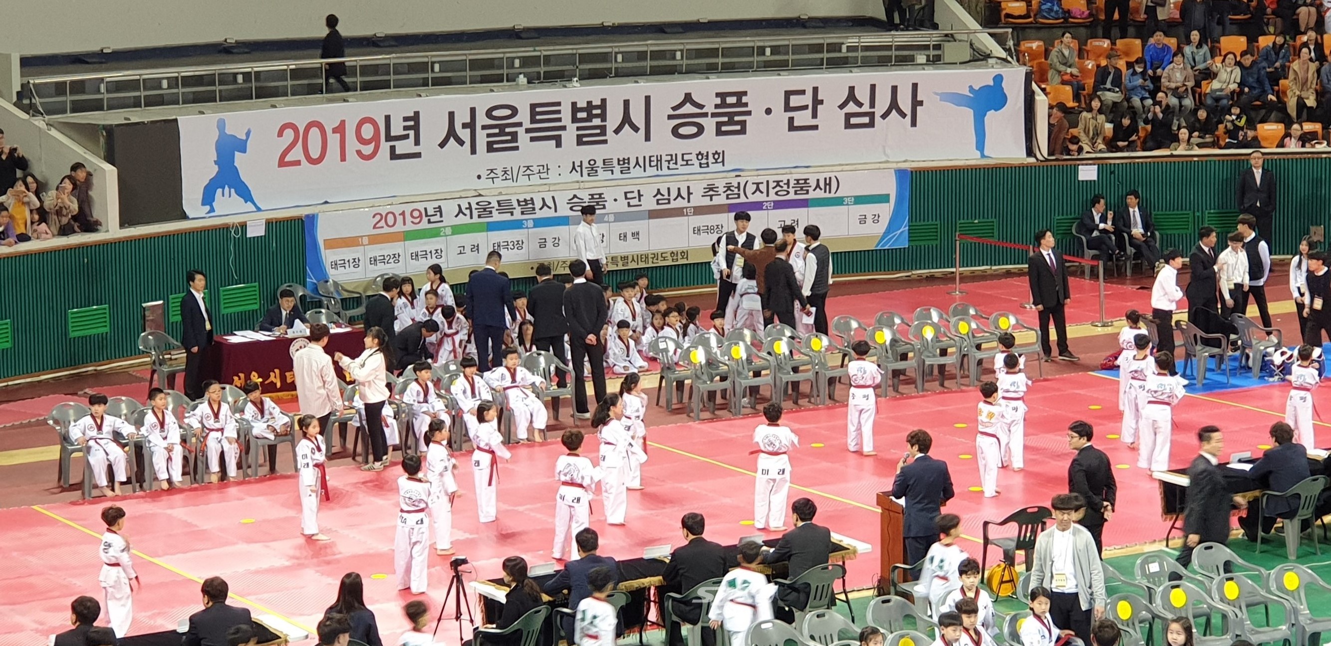 서울특별시 태권도협회(회장 최진규)에서 주최/주관한 2019년도 태권도 승품,단 심사대회가 21일 오전 잠실학생체육관에서 강서구를 비롯하여 11개구 태권도장 수련생및관람객 3,500여명이 참여한 가운데 열렸다.