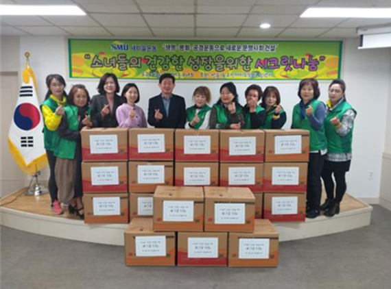 해운대구 반송1동 새마을부녀회(회장 이성희)가 지난 19일 반송1동 주민센터(동장 김경구)에서 소녀들의 건강한 성장을 위한 ‘시크릿 나눔‘ 행사를 펼쳤다.