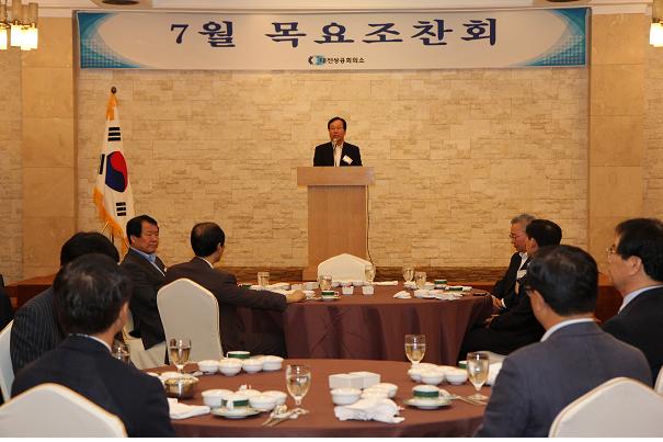 대전상공회의소(회장 손종현)는 18일 오전 7시 30분 유성호텔 3층 킹홀에서 지역발전을 선도하는 기관단체장들의 최대 정례교류회인 ‘2013년 7월 목요조찬회’를 개최하고, 지역 현안의 원활한 추진과 경제 활성화 방안에 대해 상호 의견을 나눴다.