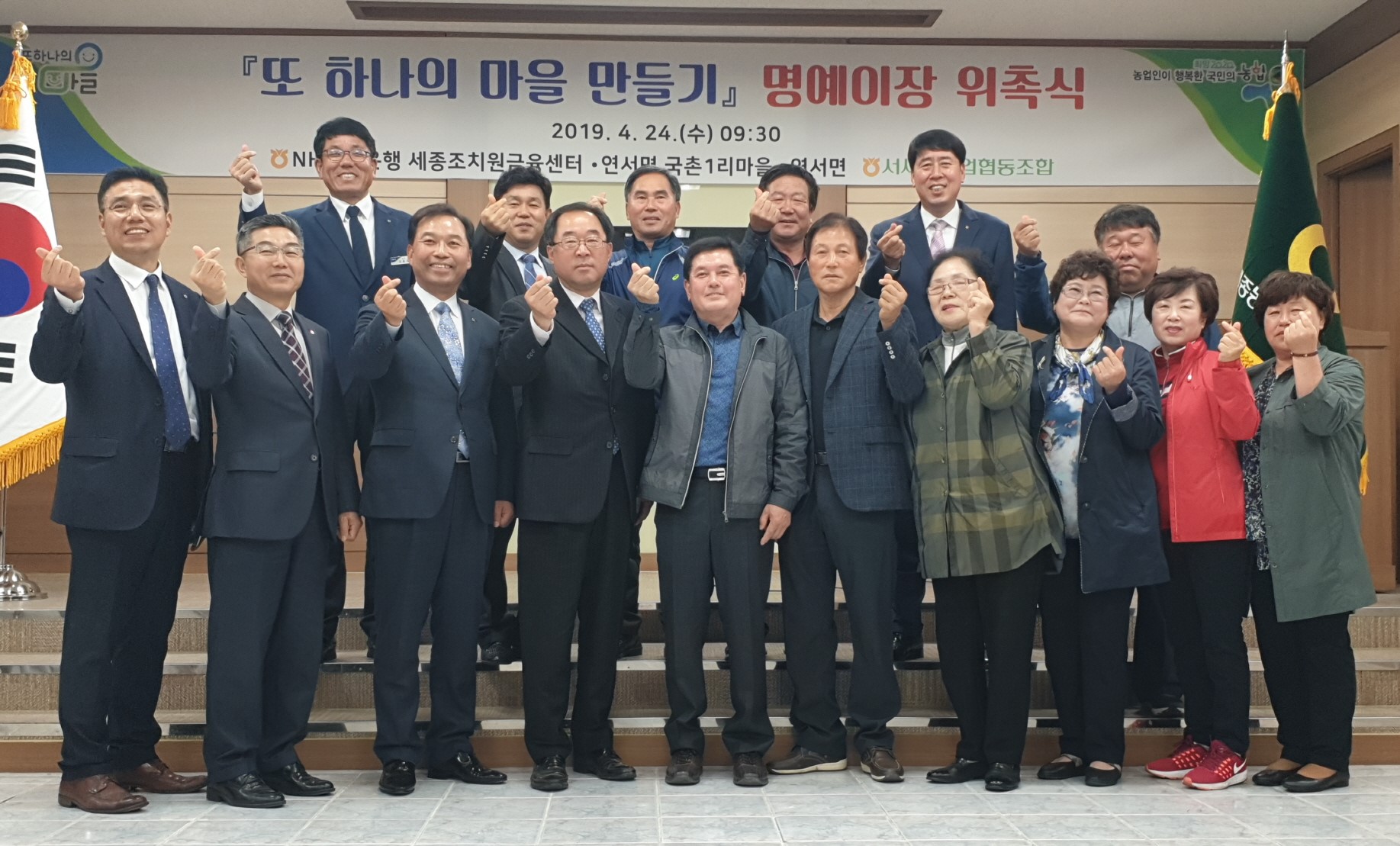 이날 협약에 따라 NH농협 유행준 세종조치원금용센터장은 연서면 국촌1리 명예이장에 위촉됐다.