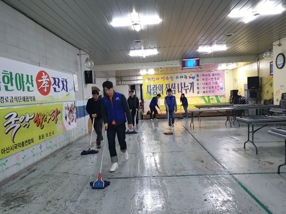 아산시 탕정면에 소재하고 있는 삼성디스플레이 임직원들로 구성된 사랑나눔봉사단은 온양온천역 어르신 무료급식소에서 5년 동안 꾸준히 자원봉사활동에 귀감이 가는 부분이다.