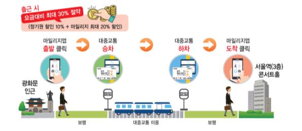 ① 시연행사: 도보로 광화문에서 시청역까지 이동 후 시청역에서 서울역까지 대중교통(지하철)을 이용하며 마일리지 적립 과정을 직접 체험