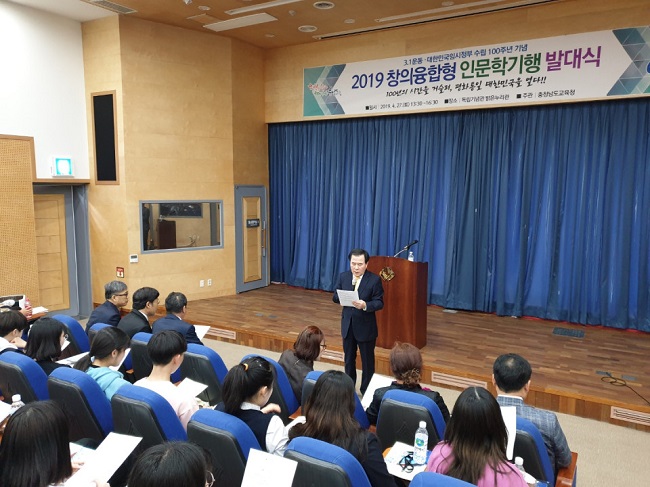 창의융합형 인문학기행은 학교장 추천과 서류·면접 심사를 통해 선발된 학생들이 중국과 러시아 일대에 산재해 있는 우리민족의 역사 유적지 견학, 주제토론, 독서토론, 책 쓰기 활동 등을 하면서 인문학적 상상력과 역사의식을 키울 수 있도록 하는 충남교육청의 대표적 학생 기행 프로그램이다. 2017년부터 실시해오고 있으며 필요한 모든 경비는 충남교육청에서 부담한다.