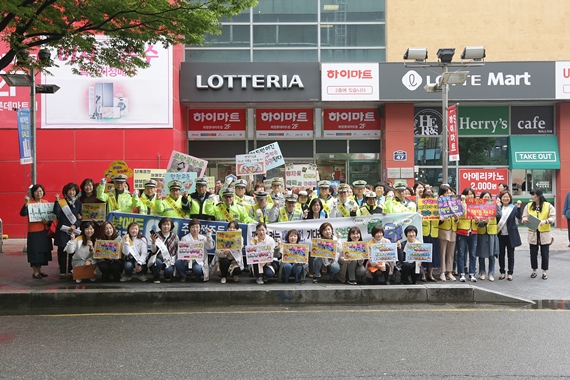 부산 북구 정명희 구청장은 지난 24일 북부경찰서와 함께 화명동 롯데마트 일대에서 어린이 교통사고 예방과 스콜존 내 불법 주정차 근절을 위해 ‘어린이 교통안전 캠페인’을 펼쳤다.