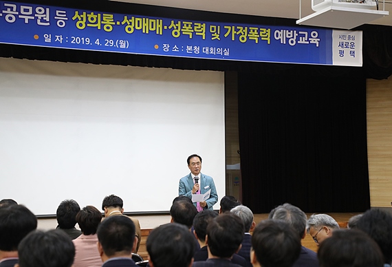 정장선 평택시장은 “이번 교육을 통해 관리자들의 성인지 감수성을 점검하고 서로 배려하고 존중하는 조직문화를 만들어 성범죄 없는 밝고 건강한 직장 분위기를 조성하는데 간부공무원이 솔선수범해 줄 것”을 당부했다.