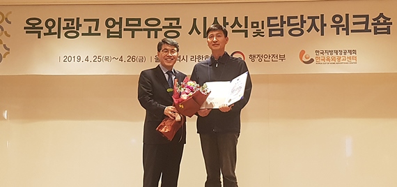 이번 수상식을 보면 전국 163개 지방자치단체의 옥외광고업무 관련 정책, 불법 옥외광고물 정비, 옥외광고물 안전관리 등 13개 항목의 실적을 종합적으로 평가하는 것으로 시는 조개터 간판정비사업, 불법유동광고물 수거보상제 활성화, 불법광고물 정비 365 기동반 운영 등의 성과가 높게 평가되어 기관표창의 영예를 안았다.