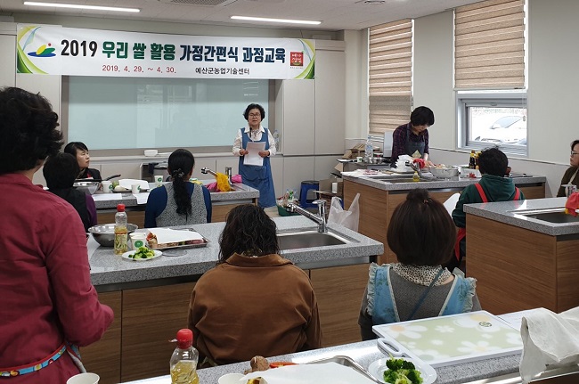예산군농업기술센터(소장 전태선)가 지난 29∼30일 이틀간 농업기술센터 내 농산물공동가공센터 실습실에서 우리 쌀을 활용한 가정 간편식 실습과정 교육을 실시했다.