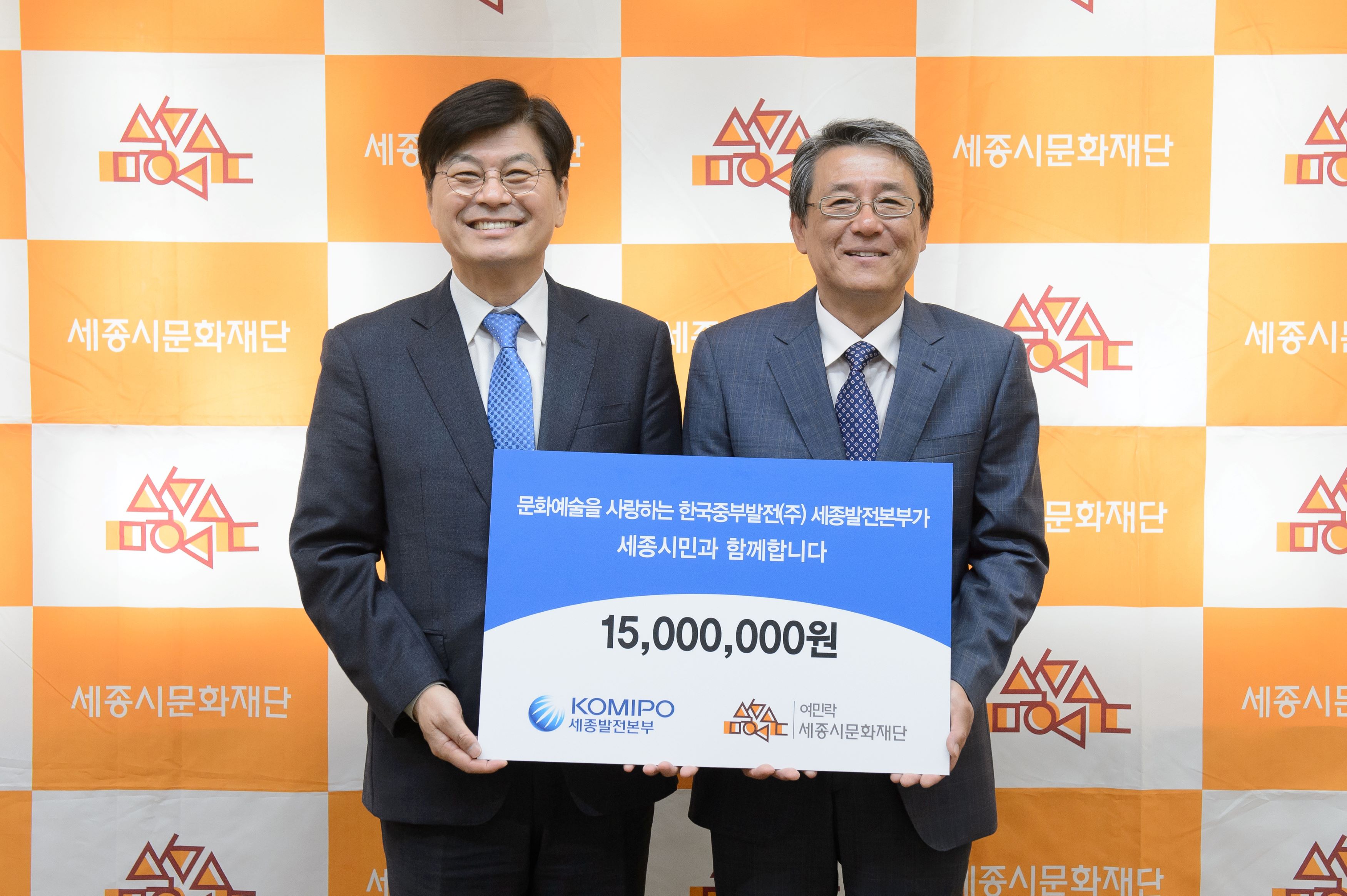 한국중부발전(주) 세종발전본부(본부장 김경수)는 29일 세종시문화재단(대표이사 인병택)에 문화예술후원금 1천 5백만 원을 전달했다.