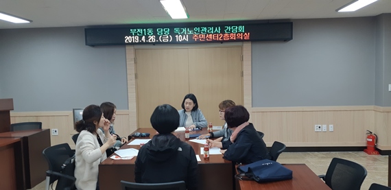 부산진구 부전1동 주민센터 이학문 동장은 지난 26일 주민센터 회의실에서 부산진구 노인복지관 김익현 관장 소속 홀몸노인 관리사와 간담회를 했다.