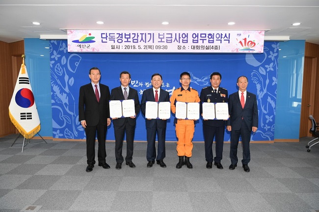 예산군은 2일 군청 대회의실에서 예산군, 예산소방서, 이·통장연합회 예산군지회, 예산소방서의용소방대 연합회 간 업무협약을 체결하고 전 가구를 대상으로 한 단독경보형감지기 보급에 나섰다.