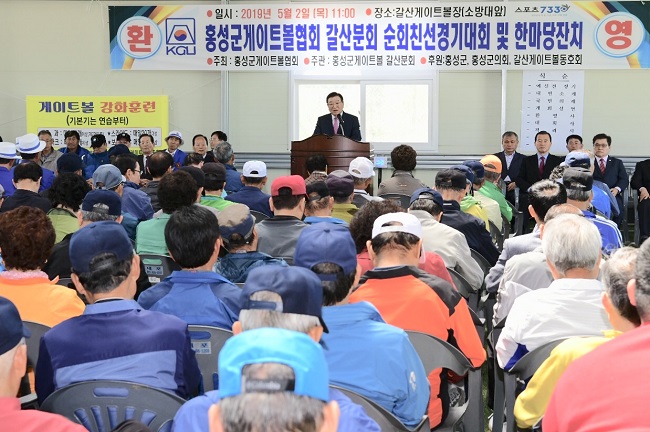 충남 홍성군은 지난 2일 갈산면게이트볼장에서 열린 홍성군게이트볼협회 갈산분회 순회 친선경기 대회 및 한마음 체육대회가 성황리에 마무리됐다고 밝혔다.