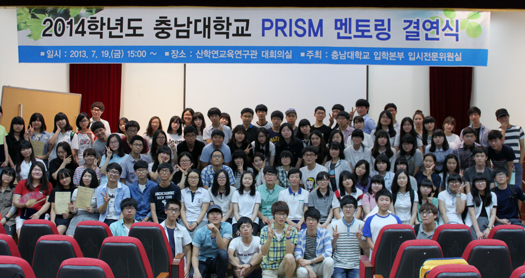 충남대 입학본부는 지난 7월 19일 오후 3시, ‘PRISM 멘토링 결연식’을 개최하고 82명의 고등학생 멘티와 21명의 충남대 재학생 멘토의 멘토링 결연식을 가졌다.