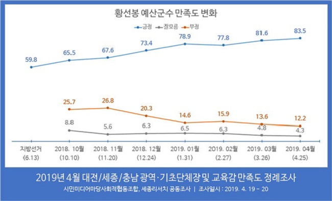 ▲ 황선봉 예산군수 만족도 변화