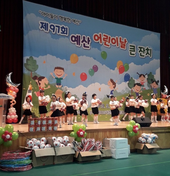 이날 행사는 예산어린이치어댄스와 신양중학교 사물놀이를 시작으로 모범어린이 시상식과 아동권리헌장 낭독, 축사 등 기념식이 진행됐고 특히 미니특공대공연, 버블쇼, 마술쇼 등 어린이들이 좋아할만한 다채로운 공연이 펼쳐졌다.