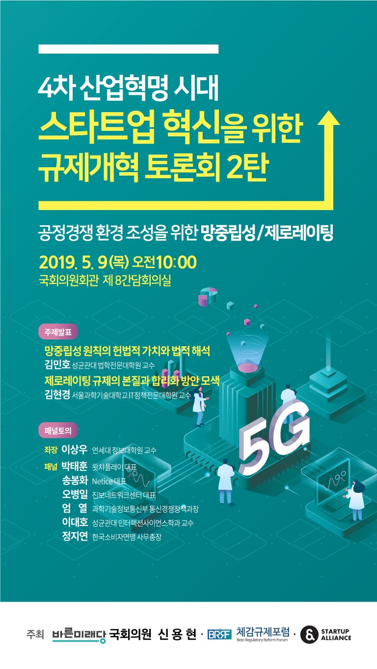 이번 토론회는 5G시대 신산업을 위한 새로운 망 정책의 필요성이 제기됨과 동시에 기존의 망 중립성 정책 유지 주장이 첨예하게 엇갈리는 가운데 공정경쟁 환경 조성 측면에서 망중립성, 제로레이팅 등 망 정책에 대한 스타트업이 제기하는 문제점 등 현장 목소리를 듣고, 개선 방안을 모색하기 위해 마련되었다.