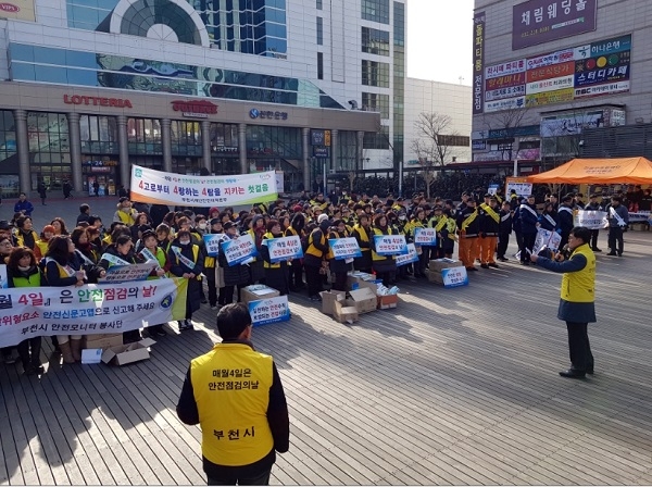 부천시는 지난 5월 8일 전철 1호선 송내역에서 공무원, 유관기관, 민간단체, 기업체 관계자 등 200여 명이 참석한 가운데 제278차 안전점검의 날 안전문화운동 캠페인을 실시했다.