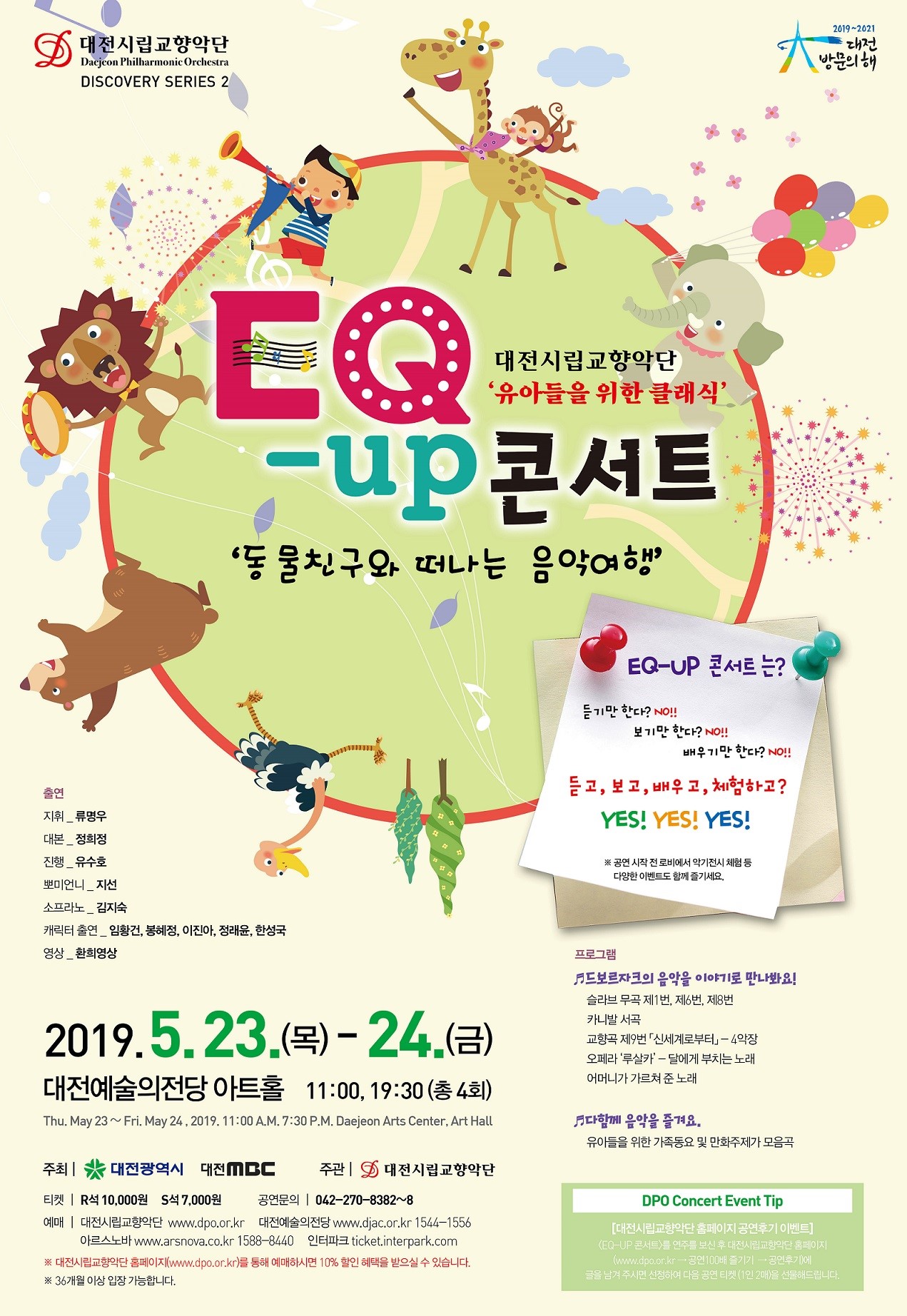 ‘EQ-UP 콘서트’는 대전시립교향악단이 유아들의 감성지수를 높이기 위해 매년 기획하는 프로젝트로 평소 클래식 공연장 문턱이 높았던 유아들에게 쉽고 재미있는 곡들을 흥미로운 진행방식으로 연출해 매 번 상당한 호응을 얻는 연주회다.