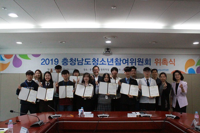 충청남도가 주최하고 재단법인 충청남도청소년진흥원 활동진흥센터가 주관하는 「충청남도청소년참여위원회 위촉식」이 5월 10일(금) 충청남도청 중회의실에서 진행되었다.