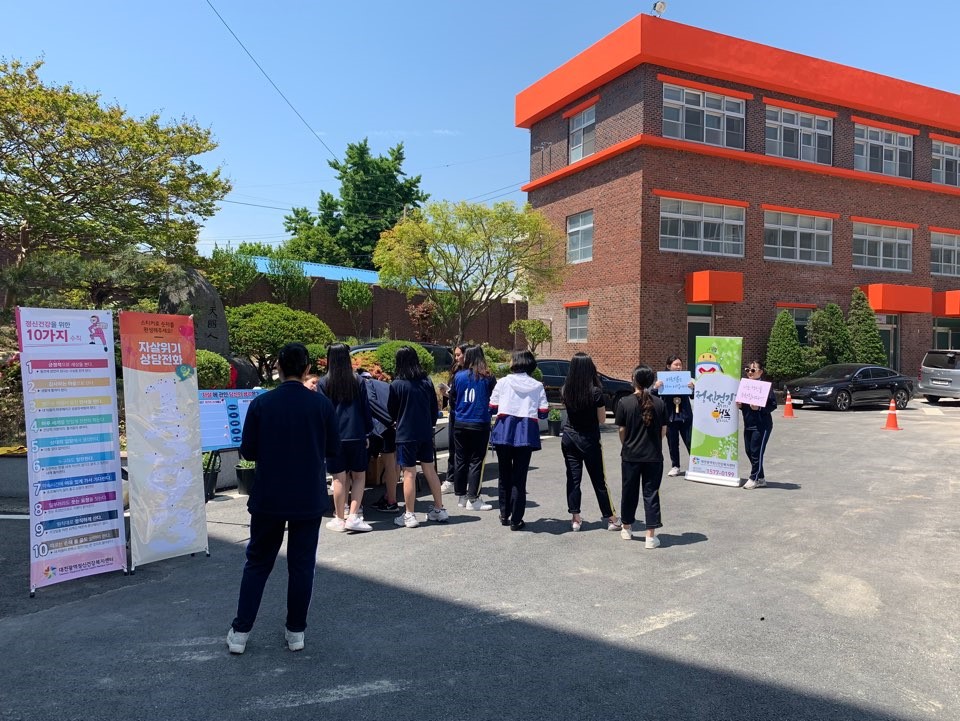 ‘생명사랑 마음건강 학교’지정에 따라 현판식을 진행하였고 당일 학교의 체육대회일정과 함께 생명사랑 문화조성을 위한 체험부스를 운영하였다.