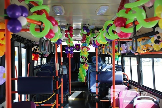 버스 전면부는 새빛이 눈과 입을 설치하고 외부에는 새빛이와 새날이가 버스를 타는 모습을 부착했으며 내부에는 어린이들에게 친근감을 줄 수 있도록 곰돌이와 풍선으로 장식하고 포토존을 설치해 어린이들이 추억을 기념할 수 있게 했다.