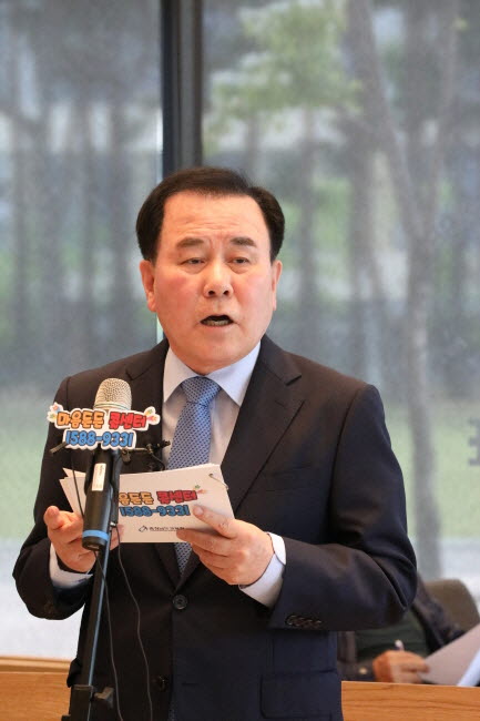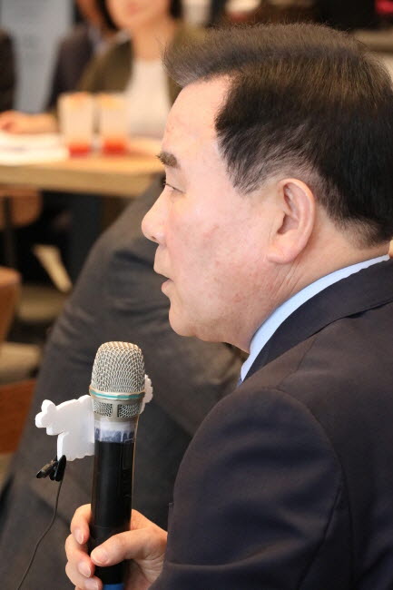 김지철 교육감이 13일 내포신도시에 있는 한 카페에서 기자브리핑을하고 있다/김재미기자