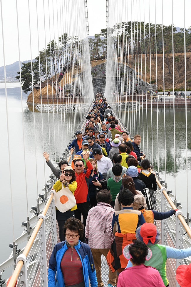 군에 따르면 국외 관광 증가와 경기불황으로 1∼3월 방문객은 전반적으로 감소했으나 국내에서 가장 긴 예당호 출렁다리가 지난 4월 6일 개통되면서 출렁다리를 방문한 관광객이 인근 주요 관광지도 함께 방문해 관광객이 대폭 증가한 것으로 파악된다고 밝혔다.
