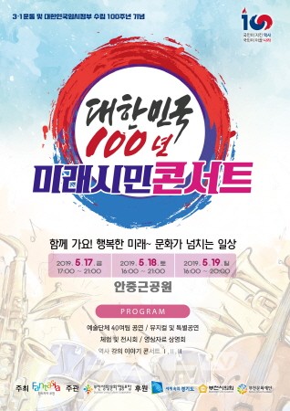 오는 5월 17일부터 5월 19일까지 3일 동안 부천 안중근공원에서 ‘대한민국 100년 미래시민콘서트’가 개최된다.
