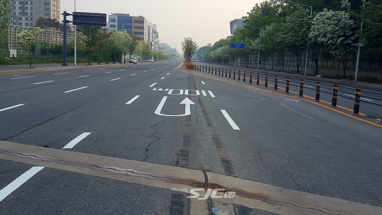 시는 교통사고를 줄이기 위해 지난 2018. 11월부터 사업비 1,348백만원을 투입해 총연장 1.6km 구간에 기존 녹지대 955m를 철거하고, 중앙분리대 역할의 녹지대 405m를 설치하고 이팝나무 53주를 식재하였다.