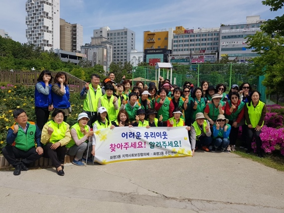 부산 북구 화명3동 주민센터 이태경 동장은 지난 8일 명예사회복지공무원과 힘을 합쳐 주민센터와 장미공원 일원에서 ‘장미마을 지킴이- 우리동네는 우리가 지킨다’ 캠페인을 펼쳤다.