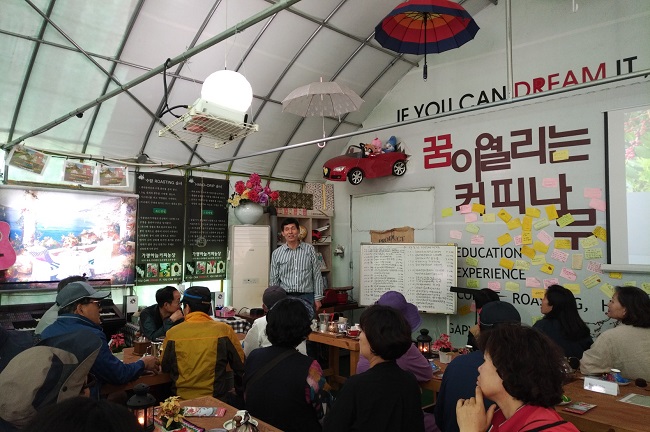 1일 차에는 ◇아침고요수목원 견학 및 허브 식물 체험 ◇가평 하늘커피농장 견학 및 커피체험, 2일 차에는 ◇서울 도시농업박람회 견학 ◇광명동굴 견학 등과 함께 우수농장 체험 현장방문교육을 통해 농업기술을 배우기도 했다.