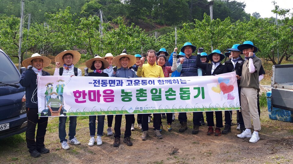 세종특별자치시 전동면(면장 전만익)과 고운동이 영농철을 맞아 17일 전동면 송정리에서 ‘한마음 농촌일손돕기’를 진행했다.