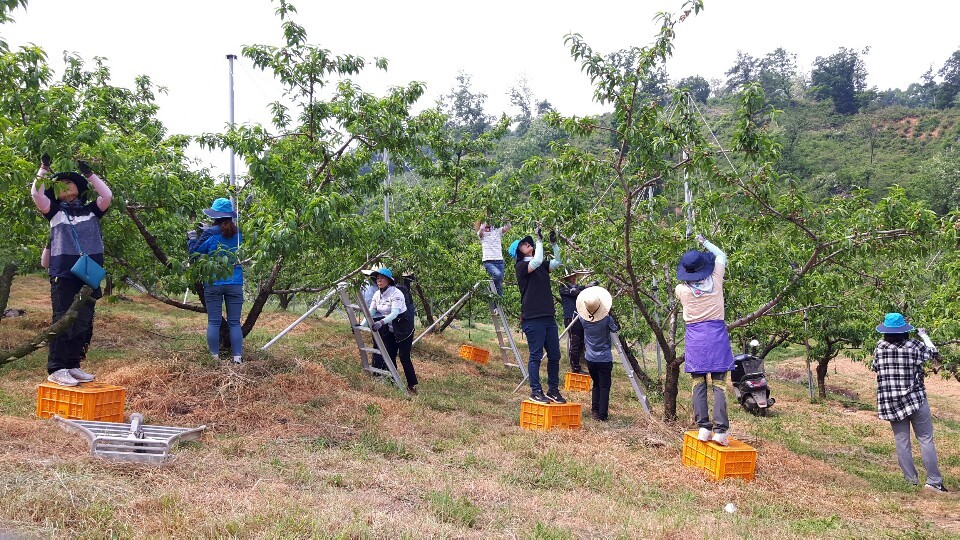 양 기관 소속 공무원 20여명은 이날 일손이 부족한 송정리 농가에서 복숭아 열매솎기 등의 작업에 참여해 구슬땀을 흘렸다.
