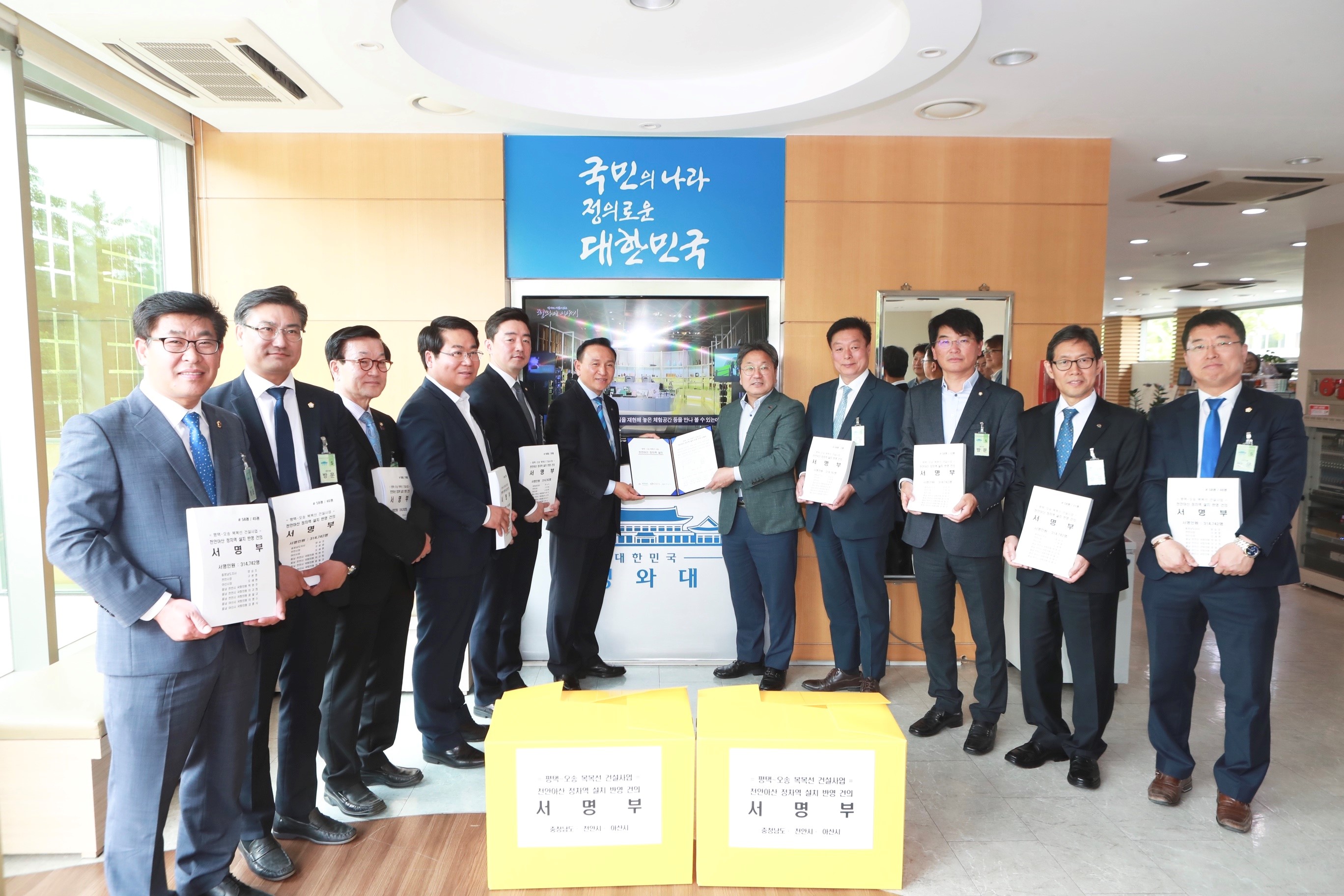 - 천안시, 31만 시민 서명부 제출…천안아산 정차역 설치 강력히 건의-