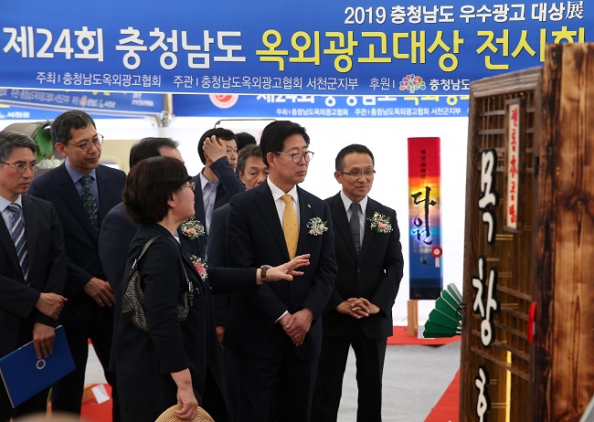 대상전 첫날인 16일 열리는 개회식에는 양승조 충남지사와 유병국 도의회 의장, 김지철 도교육감, 노박래 서천군수 등 200여 명이 참석해 옥외광고 단체 임원들을 격려하고, 전시물을 관람했다.