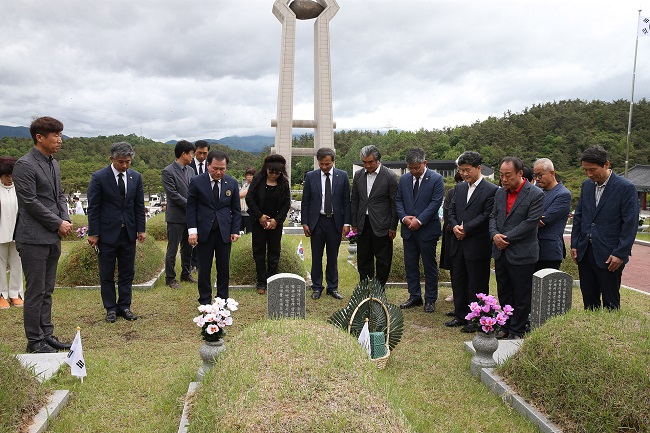 충남교육청(교육감 김지철)은 39주년 5.18 민주화운동 기념일을 맞아 민주, 인권, 평화 정신을 계승하고 국민통합의 계기로 삼기 위해 김지철 교육감을 비롯한 직원 40여명이 충남도의회 의원들과 함께 18일 국립 5.18 민주묘지를 참배했다고 밝혔다.