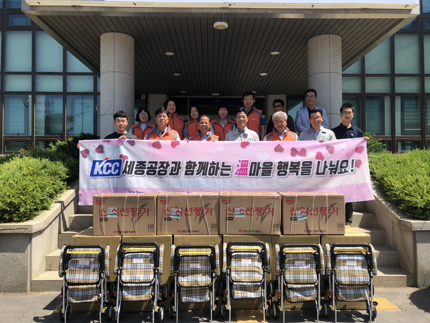 KCC세종공장은 꾸준히 지역사회에 관심을 가지며 지원을 해온 기업으로, 이번 후원을 통해 노인들의 이동권 보장와 건강한 여름나기에 조금이나마 도움이 될 것으로 기대하고 있다.