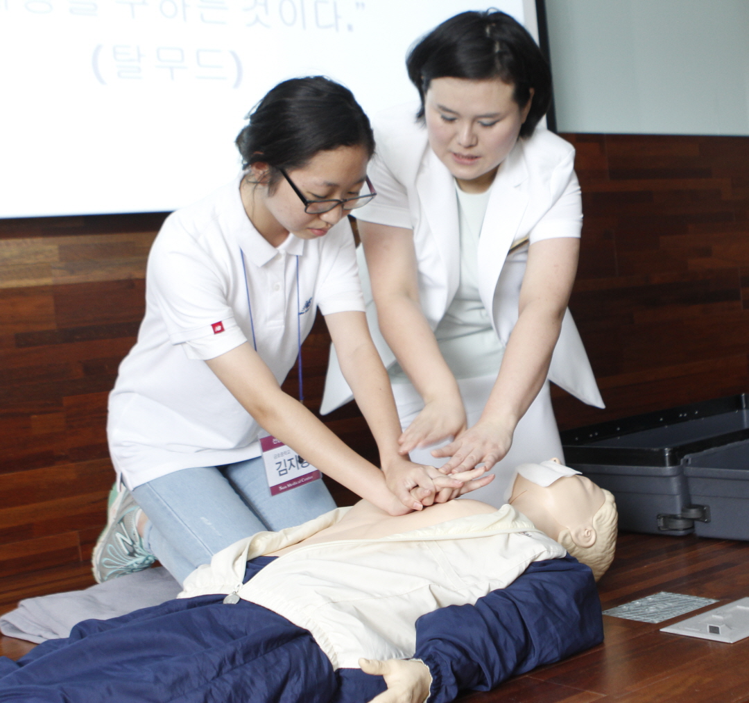 유성 선병원과 협약이후 첫번째 사업으로 실시된 이 날 캠프에는 금호중과 도담중, 부강중 학생 30명이 참여해 병원소개, 병원의 직종과 직무이해, 심폐소생술 교육, 수술실 체험, 첨단 의료장비 체험 등 다양하게 구성된 프로그램을 통한 체험을 즐기게 됐다.