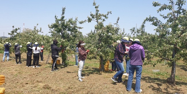 이날 봉사활동에는 보건소 직원 20명이 참석해 5200여㎡의 정씨 농가를 찾아 사과 적과와 잡초제거 활동을 펼쳤다.
