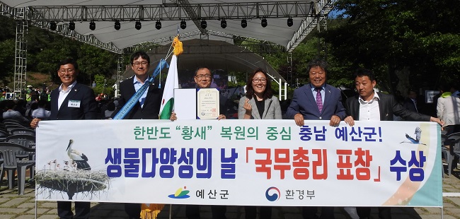 예산군은 2009년부터 추진해온 황새복원 사업을 통한 생태계 생물다양성 회복의 공을 인정받아 국무총리상의 영예를 안았다.