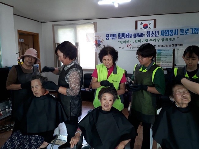 청소년자원봉사 장곡면 찾아 염색봉사 구슬땀
