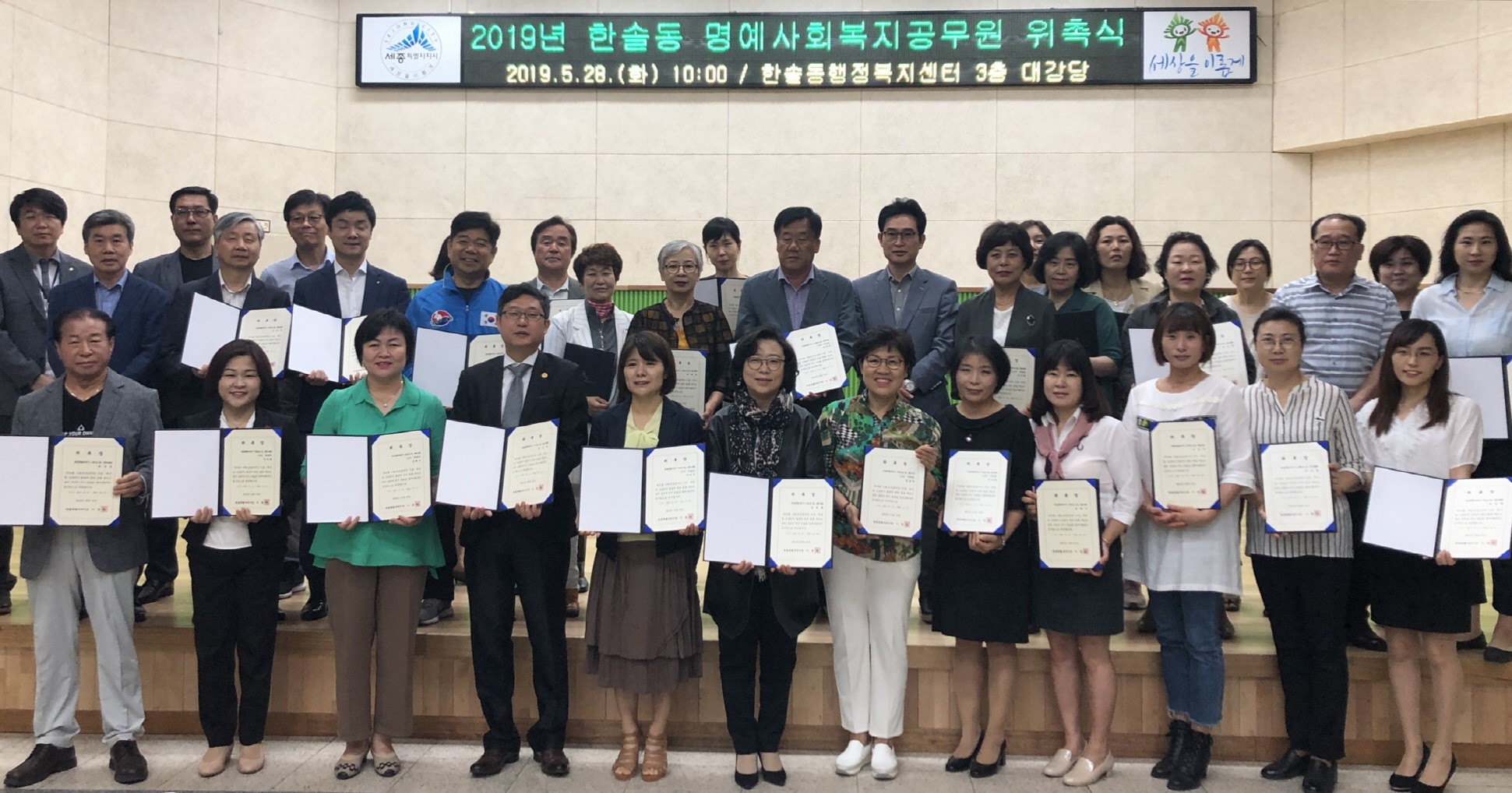 이날 한솔동은 위촉장 수여와 함께 역량강화교육을 실시해 명예사회복지공무원의 역할과 책임에 대해 의견을 나누고 앞으로의 활동 방안을 함께 고민해보는 시간을 가졌다.