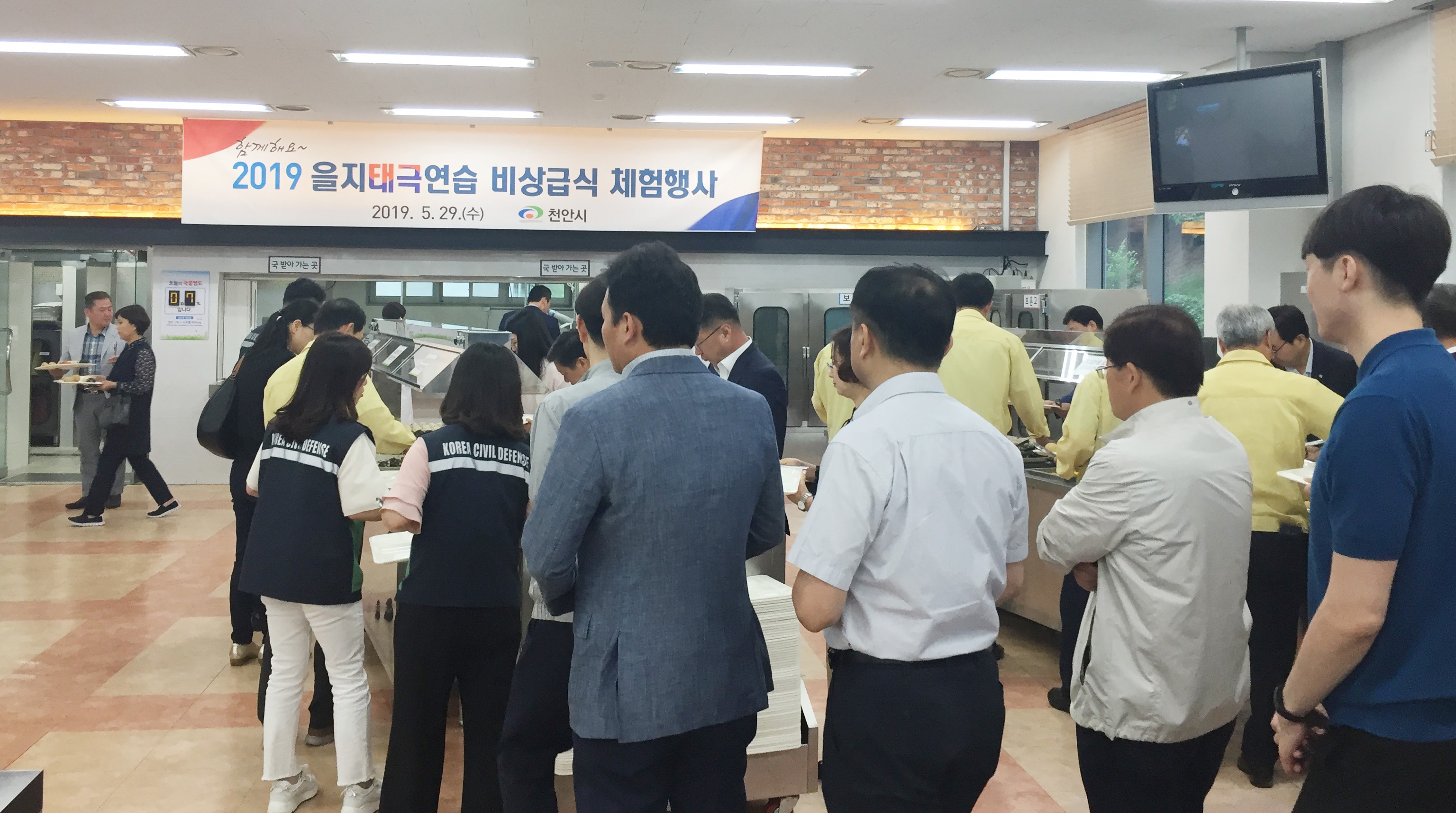 천안시가 27일부터 30일까지 2019 을지태극연습을 시행 중인 가운데 29일 2일차에는 비상급식 체험행사와 대태러 실제훈련을 진행했다.