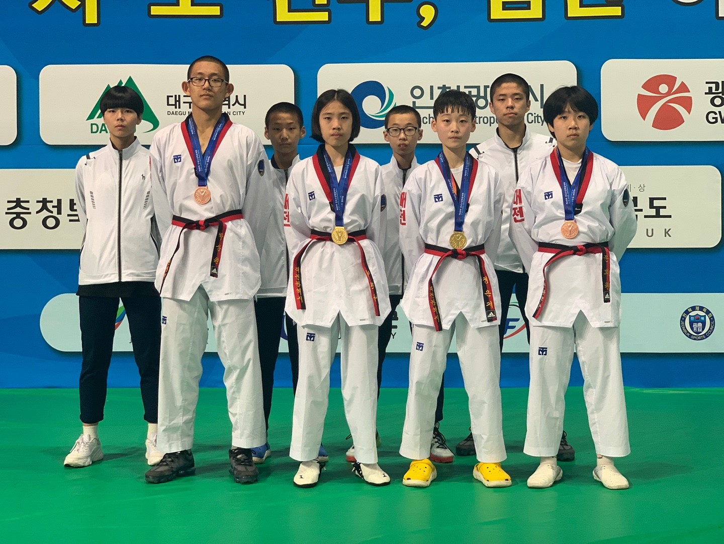 오정중학교(교장 원종대)는 지난 5월 25일(토)부터 28일(화)까지 전라북도 무주 태권도원에서 열린 ‘제48회 전국소년체육대회’ 태권도 종목에서 금메달 2개, 동메달 2개를 획득했다고 밝혔다.