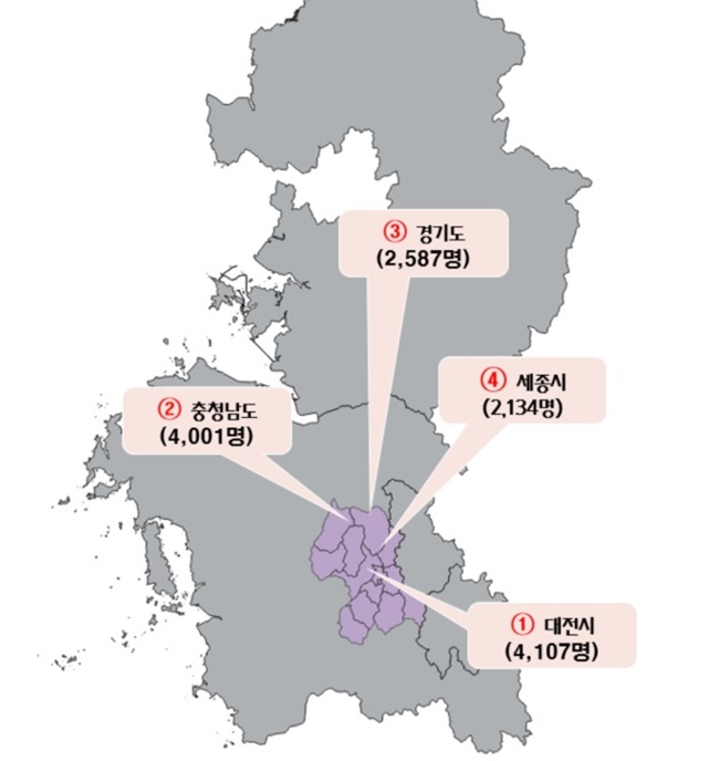 공주시에서 생활하는 공주시외 지역 거주자는 평균 2만 5천여 명으로, 이 중 대전지역 인구가 가장 많은 것으로 나타났다.