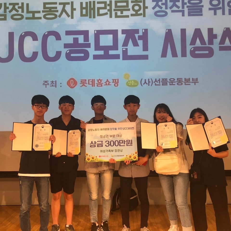 새뜸중학교(교장 송명현, 이하 새뜸중)는 지난해 12월 21일부터 올해 1월 20일까지 공모한 선플재단 선플운동본부(이사장 민병철)와 롯데홈쇼핑(대표이사 이완신)이 주최하는 「감정노동자 배려문화 정착 UCC 공모전」 청소년 부문에서 대상을 수상했다.