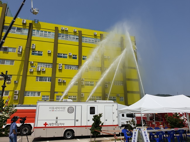 이날 훈련은 홍성군, 홍성소방서, 홍성경찰서, 1789부대, 홍성의료원 등 13개 기관 및 민간단체 240여 명이 참여하여 홍주요양병원 대형화재로 인한 다수사상자 발생을 가상하여 진행하였다.