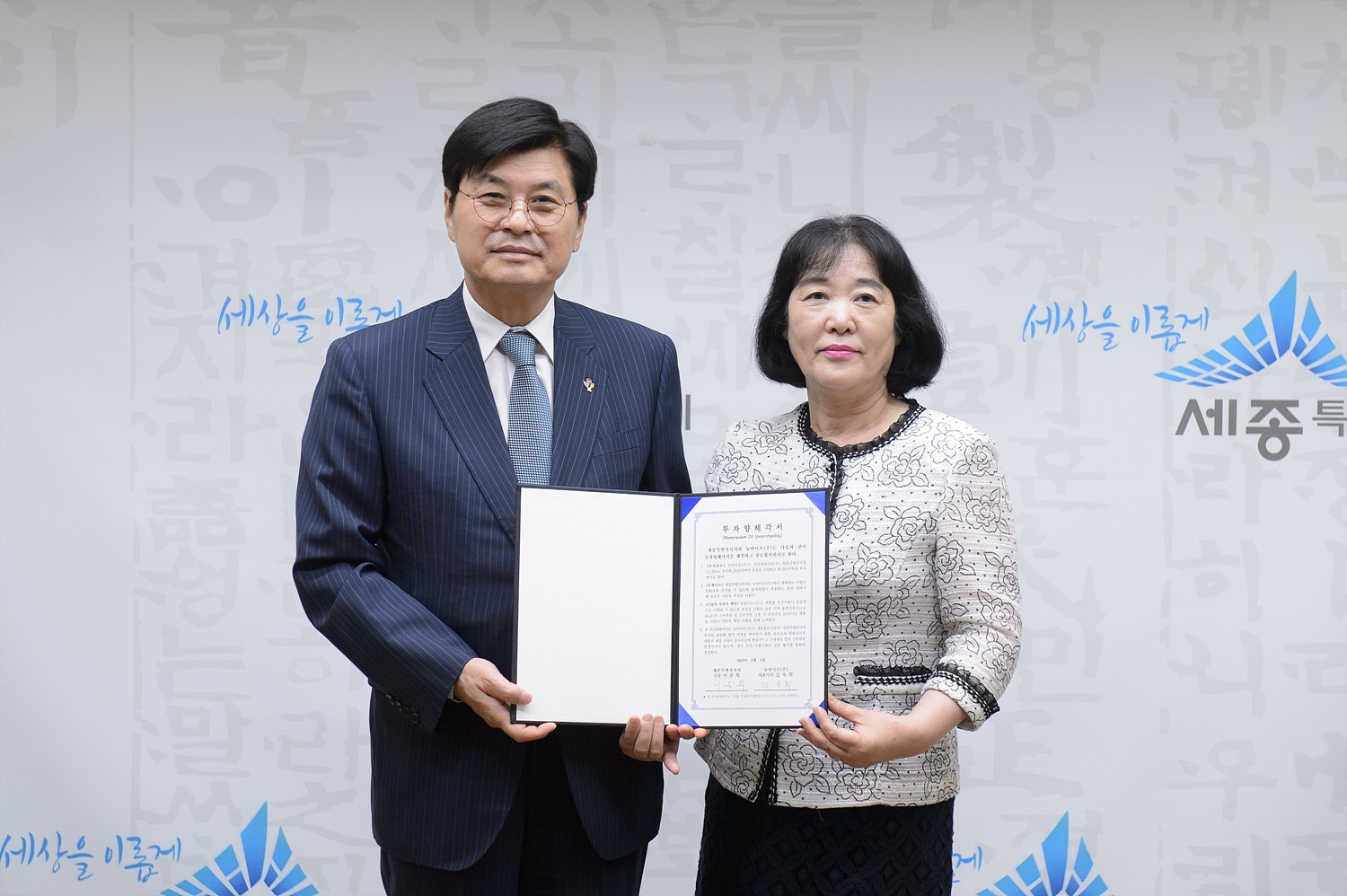 세종특별자치시(시장 이춘희)는 5일 시청 접견실에서 이춘희 시장과 김숙희 뉴바이오㈜ 대표가 참석한 가운데 총 301억 원 규모의 투자협약을 체결했다고 밝혔다.