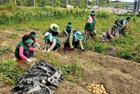 (사진/중구 제공) 대전 중구(구청장 박용갑) 산성동 주민자치센터는 지난 27일 산성동 새마을부녀회(회장 유순자), 행복한 세상을 만드는사람들의모임(회장 윤영기), 복지만두레(회장 강길성)회원 30여명이 참여, 사랑의 텃밭에서 수확한 감자 600㎏을 관내 독거노인들과 어려운 이웃에게 전달했다. 저작권자 © SJB세종TV 무단전재 및 재배포 금지 세종TV 다른기사 보기 페이스북 트위터 카카오톡 네이버블로그 구글+ URL복사 기사공유하기