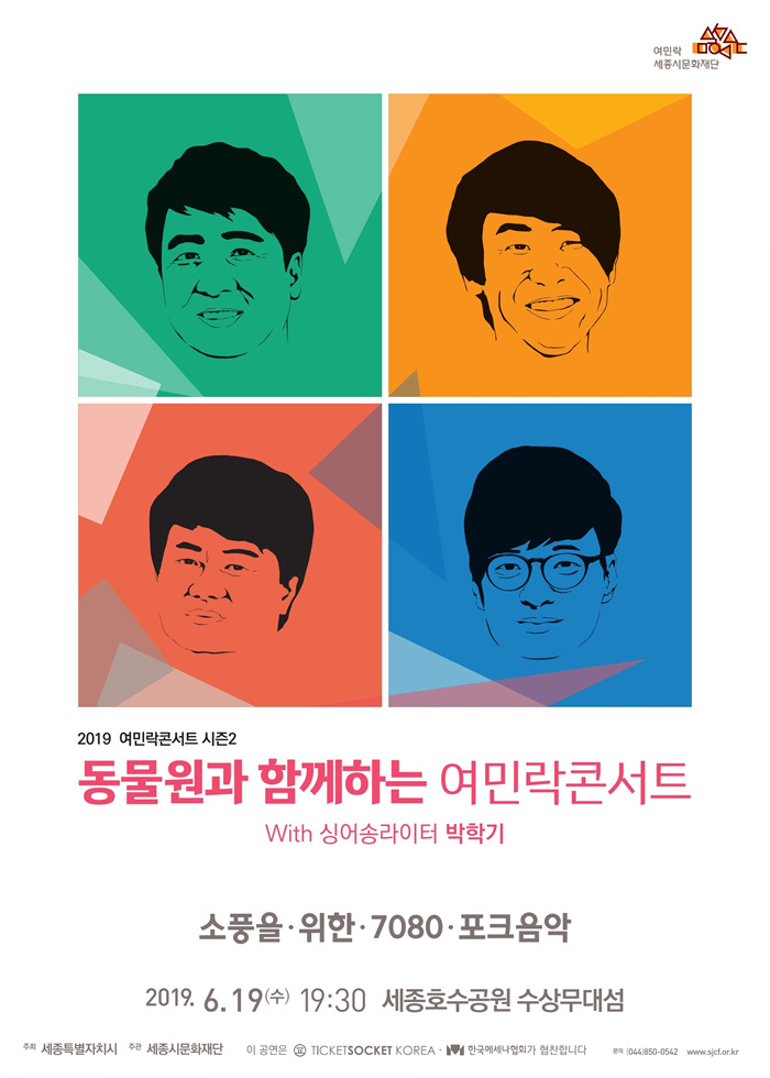 이번 공연에서는 ‘널 사랑하겠어’, ‘혜화동’ 등 동물원의 대표곡은 물론 싱어송라이터 박학기가 특별게스트로 참여해 ‘비타민’, ‘아름다운 세상’ 등 여름밤에 어울리는 곡들로 90분 동안 세종시민과 함께한다.