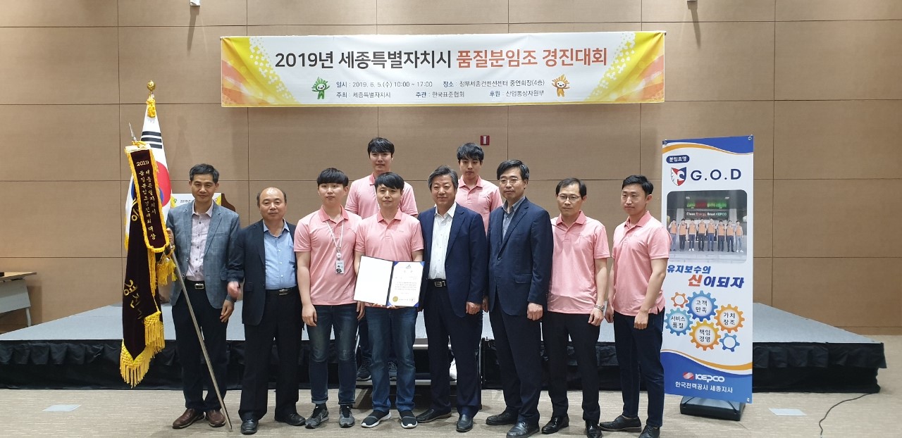 세종특별자치시(시장 이춘희)가 지난 5일 정부세종컨벤션센터에서 개최한 ‘2019년 세종특별자치시 품질분임조경진대회’에서 한국전력공사 세종지사 지오디(G.O.D) 팀이 영예의 대상을 수상했다.